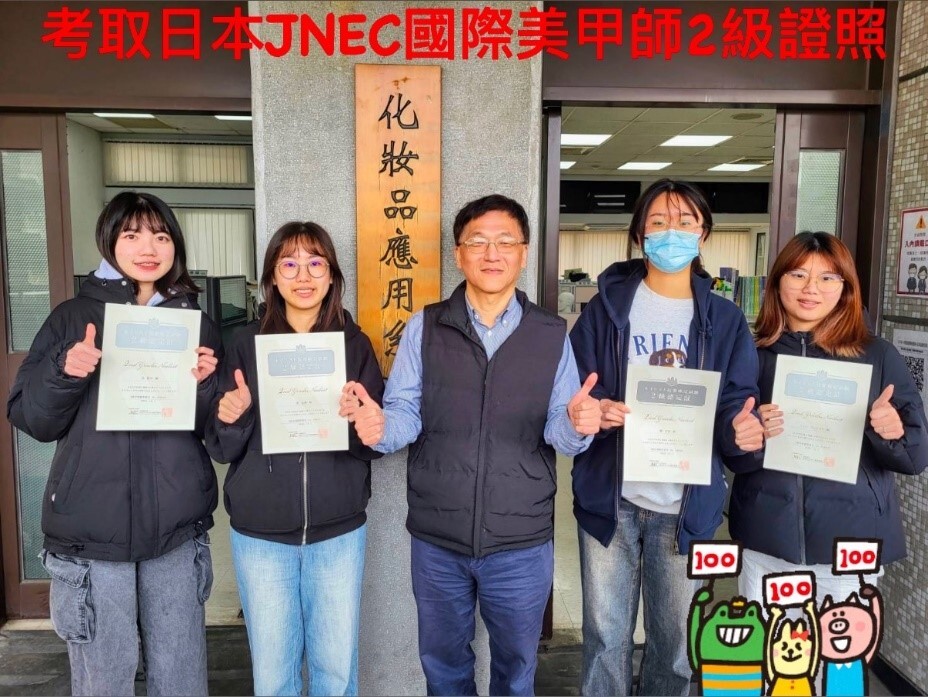 化妝品應用系輔導學生考取日本JNEC美甲師2級國際證照